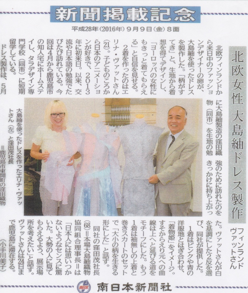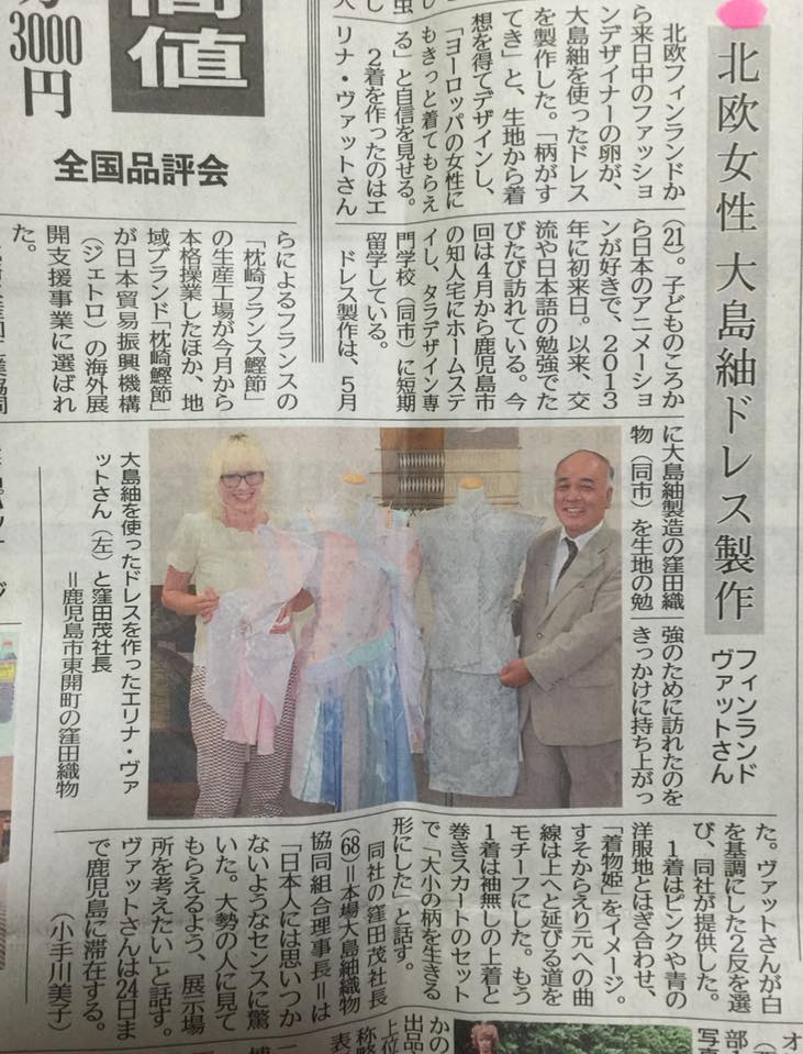 Kuusankoskelaisen vaatesuunnittelijan Elina Wätön ja japanilaisen kangasyrityksen Kubota Orimonon yhteistyö etenee. Kubotan toimitusjohtaja Shigeru Kubota vieraili Kouvolassa maanantaina. Hän johtaa kangastehdasta Etelä-Japanissa Kagoshiman kaupungissa. Tehdas tuottaa ja jälleenmyy Oshima tsumugi -nimellä tunnettua silkkikangasta. Kubota on keskittynyt japanilaisiin perinteisiin kimonoihin.