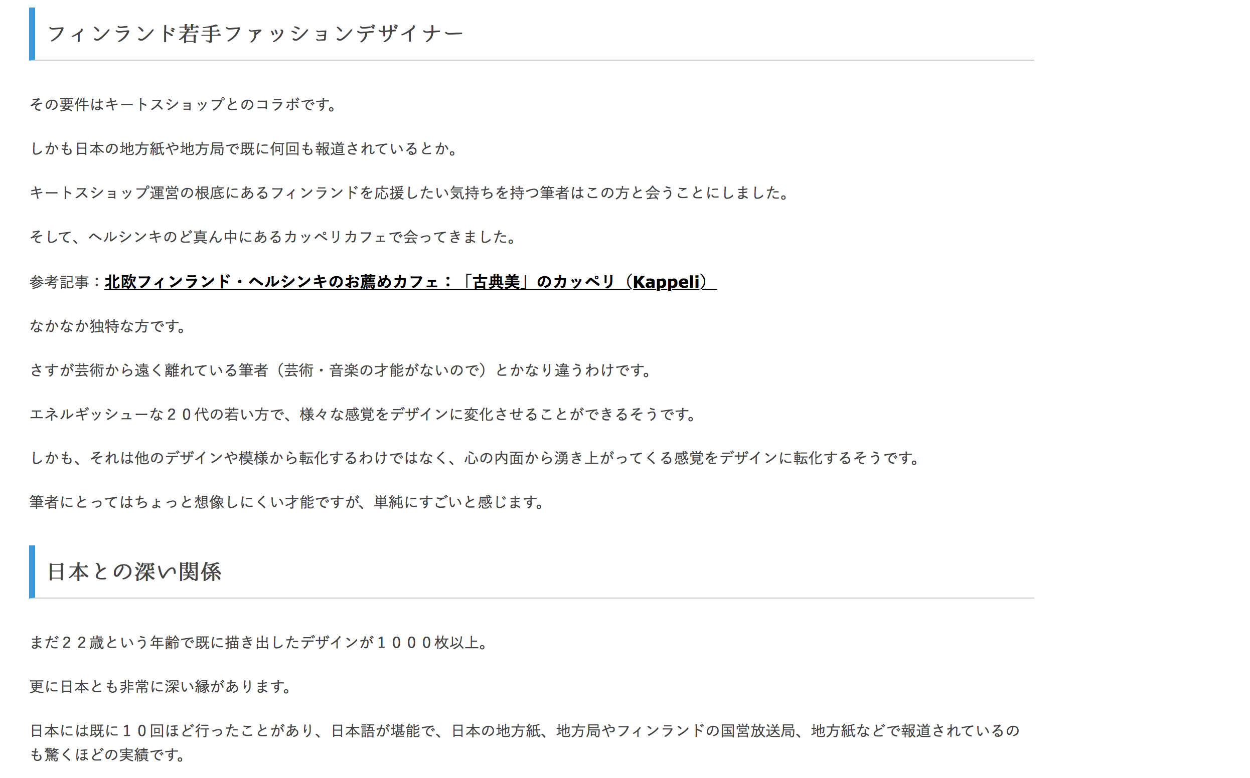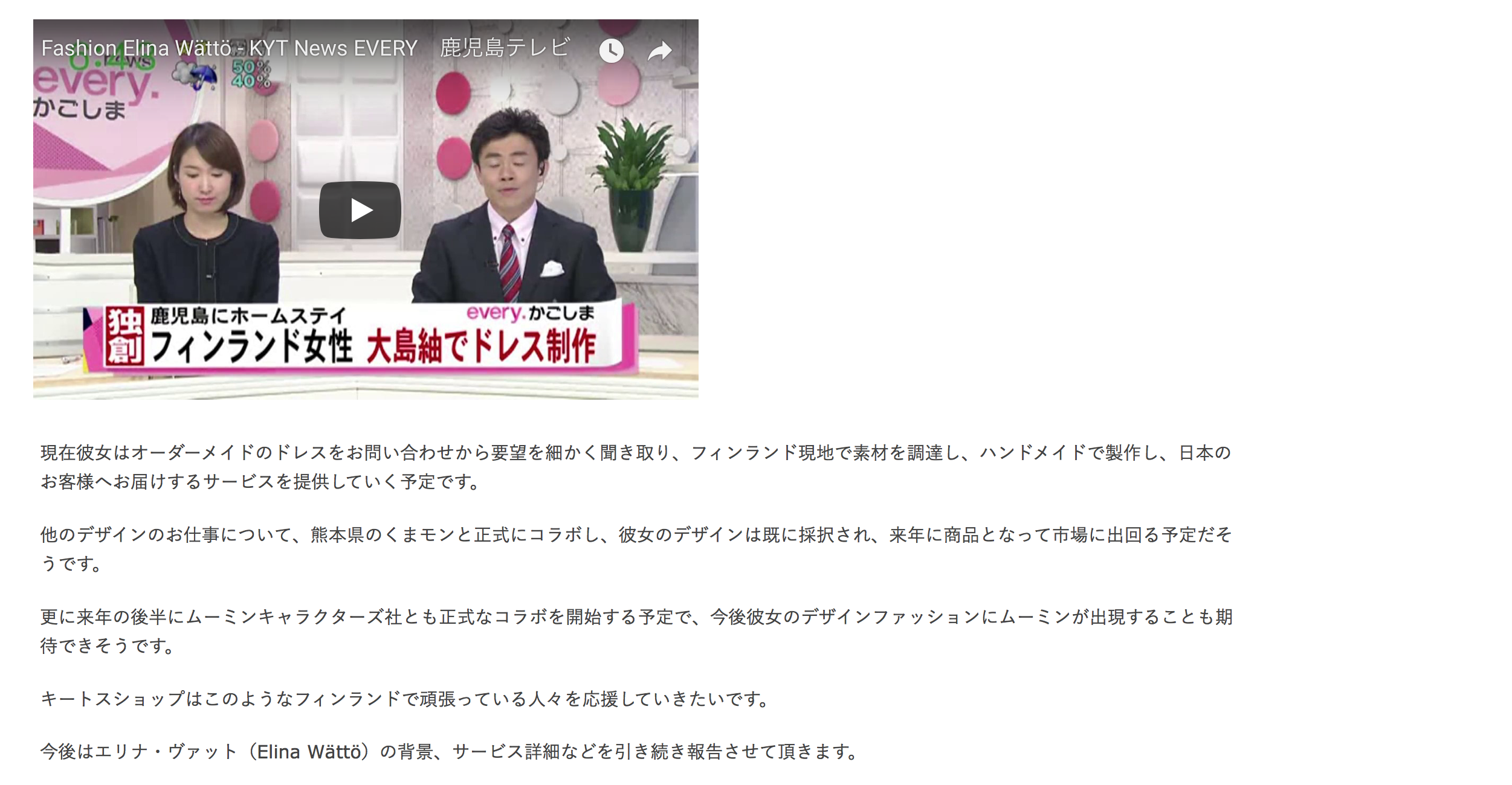I had an interview with Kiitos-shop